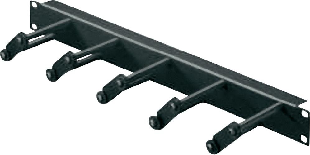 Zum horizontalen Rangieren der Patchkabel mit 5 Kabelsprossen. Das Öffnen der Einzelsprossen ermöglicht die bequeme Modifikation und Erweiterung der Verkabelung.