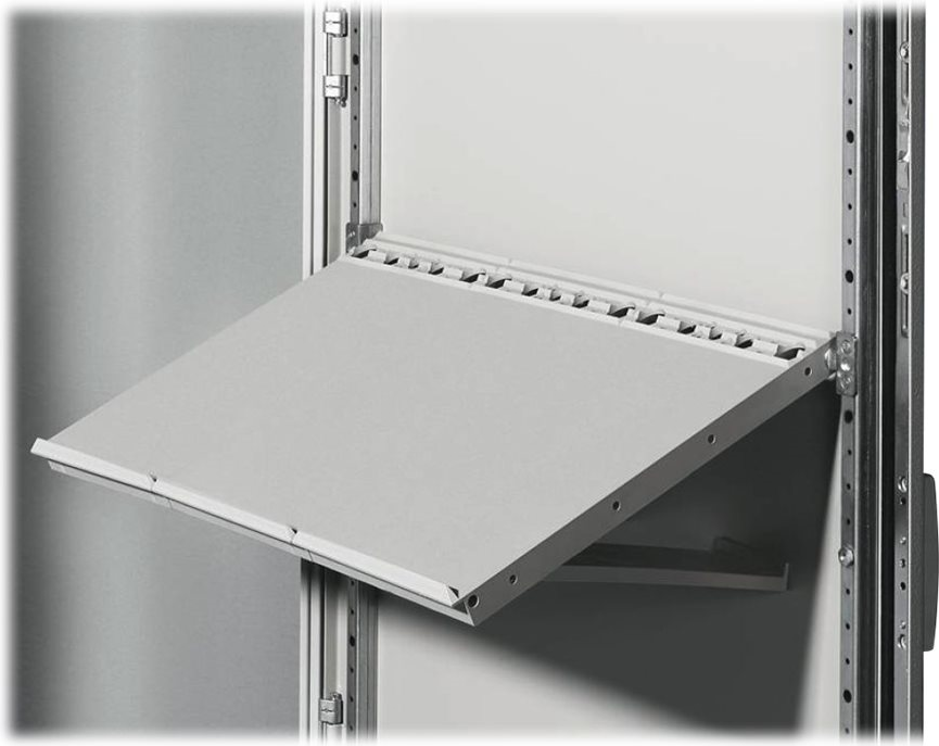 Zur Ablage von Schaltplänen bei Fehlersuche und Wartungsarbeiten. Die Schaltplanpulte lassen sich entsprechend der Türbreite anreihen.