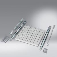 SCHÄFER 48,30cm (19")- Fachboden, ziehbar, Breite: 422 mm x Tiefe: 600 mm, hellgrau RAL 7035 (für Einbau mit 2 x 48,30cm (19")-Ebenen) Der ziehbare 48,30cm (19")-Fachboden, mit passiver Belüftung, wird im Lochraster der vorderen und hinteren 48,30cm (19")-Ebene montiert. (6760500)