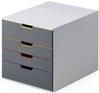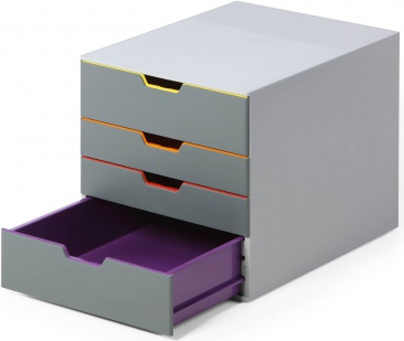 Formschöne und innovative Schubladenbox mit 4 farbigen Schubladen in sehr hochwertiger Kunststoffqualität. 2 Schubladen bieten im XXL-Format besonders viel Stauraum. Feine Farblinien dienen bei geschlossenen Schubladenfronten als Organisations- und Orientierungshilfe. Geräuschfreier Schubladenleichtlauf mit Auszugssperre. Für Formate bis DIN A4, C4 sowie Folio- und Letter-Size-Format.