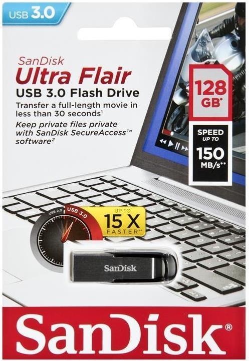 Das SanDisk Ultra Flair USB 3.0 Flash-Laufwerk ermöglicht ein schnelles Übertragen von Dateien. Weniger Warten beim Übertragen von Dateien und Highspeed USB 3.0 Performance von bis zu 150 MB/s . Bei 15-mal schnelleren Übertragungsgeschwindigkeiten als mit Standard USB 2.0 Laufwerken ist ein Übertragen von Spielfilmen in voller Länge in weniger als 30 Sekunden möglich .Das robuste und schlanke Metallgehäuse kann auch gelegentliche Schläge und Stürze wegstecken. Der Passwortschutz sorgt dafür, dass Ihre privaten Dateien auch privat bleiben . Das SanDisk Ultra Flair USB 3.0 Flash-Laufwerk überzeugt nicht nur durch sein modernes Design, sondern sorgt auch für zuverlässigen Schutz Ihrer Dateien.Alle SanDisk -Produkte entsprechen den höchstmöglichen Standards und unterliegen strengen Tests. Deshalb können Sie jederzeit auf die herausragende Qualität, Leistung und Zuverlässigkeit von SanDisk-Produkten vertrauen.