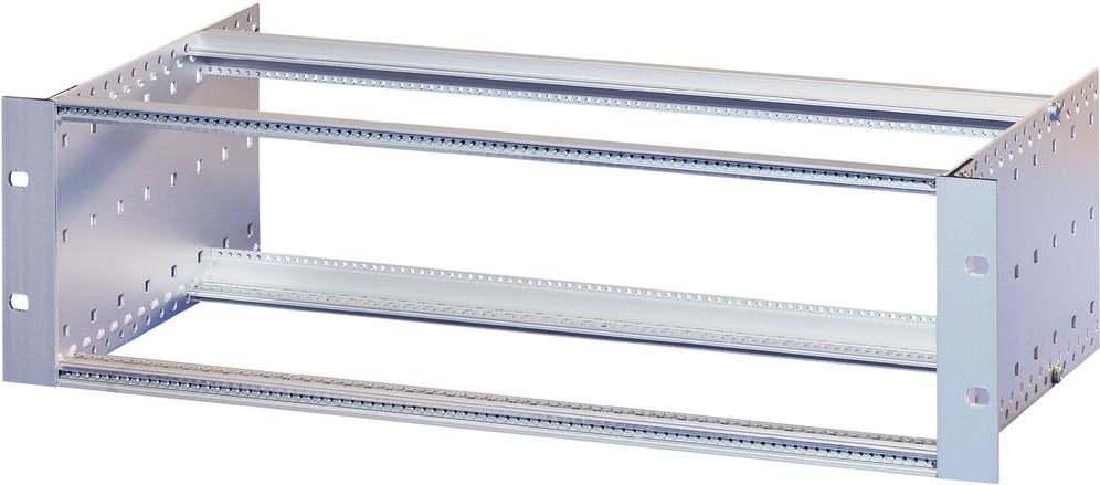 48,26 cm (19"")-Baugruppenträger, 3HE, 84TE. Lieferung als Bausatz, zum Teil vormontiert. Die rückwärtigen Modulschienen sind für die Steckverbindermontage (IEC 60603-2/DIN 41612) ...