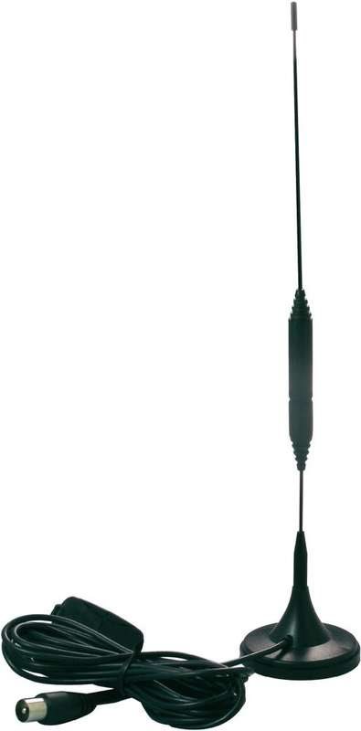 - Aktive DVB-T Antenne (mit Magnetfuß und eingebautem Verstärker), verwendbar im Innen- und Außenbereich - Geeignet zum Aufstellen mit stabilem Standfuss und magnetisch haftend auf Metall - Zum Empfang von analogen und digitalen TV-Signalen im VHF- und UHF-Bereich - Auch zum Empfang von digitalen Radioprogrammen (DAB) geignet - Keine Neuausrichtung (Horizontal/Vertikal) bei unterschiedlich polarisierten Sendern nötig - Vermeidung von Störungen durch z. B. Handys oder Schnurlos-Telefone durch eingebaute Filter - 5 V DC Spannungsversorgung über das Koaxkabel direkt vom DVB-T-Receiver