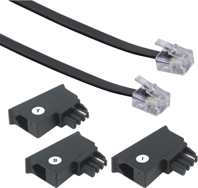 Mit diesem 4-teiligen SCHWAIGER Telefon Anschlussset können alle handelsüblichen Telefone an eine TAE Anschlussdose angeschlossen werden. Das Telefonkabel wird dazu in einen der 3 vorgesehenen Adapter gesteckt und mit der Telefondose verbunden. Die Adapter sind speziell gekennzeichnet. Der Adapter \"S\" ist für Telefone von Siemens, \"T\" für Telefone der Telekom und \"I\" für internationale Telefone konzipiert.Produkttext[/head]Mit diesem 4-teiligen SCHWAIGER® Telefon Anschlussset können alle handelsüblichen Telefone an eine TAE Anschlussdose angeschlossen werden. Das Telefonkabel wird dazu in einen der 3 vorgesehenen Adapter gesteckt und mit der Telefondose verbunden. Die Adapter sind speziell gekennzeichnet. Der Adapter \"S\" ist für Telefone von Siemens, \"T\" für Telefone der Telekom und \"I\" für internationale Telefone konzipiert.[head]Hauptmerkmale