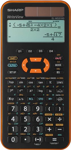 Für die weiterhführende Schule, SEK I. In allen Bundesländern zugelassen! Das große Display ermöglicht, dass Brüche, Wurzeln und Formeln nicht nur in der Reihenfolge eingetippt werden, wie der Schüler sie ins Schulheft schreibt (WRITE), sondern auch die Anzeige wie im Schulbuch aussieht (VIEW). Die Darstellung der Anzeige kann vom WriteView - in den Line-(Zeilen-)Modus wie bei den Standardrechnern umgeschaltet werden. Mit der Multiline-Playback-Funktion können Eingaben wieder aufgerufen und verändert bzw. verglichen werden. Die CHANGE-Taste konvertiert durch einen Tastendruck einen Bruch in eine gemischte Zahl bzw. eine Dezimalzahl. Dieser Taschenrechner beherrscht alle in der Schule (SEK I) benötigten wissenschaftlichen Funktionen, wie z.B. Statistik (1&2 Variable, 7 Regressionen), nBasis-Berechnungen (dec, hex, oct, bin, pen), u.v.a.m. und logische Operatoren.