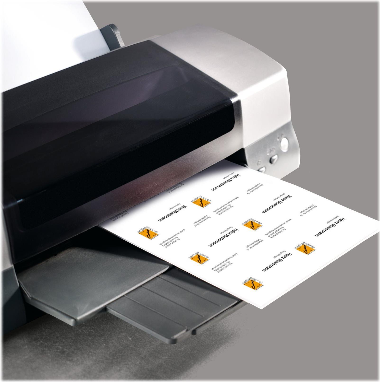 PC-Visitenkarten hochweiß, mit einer Grammatur von 190 g/m2, FSC -zertifiziert, sind ideal zum schnellen und einfachen Gestalten und Drucken am eigenen PC und Drucker. Einfaches Heraustrennen durch 3C-Technologie: glatter Schnitt rundum ohne Perforation. Die Visitenkarten sind vielseitig einsetzbar beispielsweise für Events, Messen oder geschäftlichen und privaten Kontaktaustausch. Für alle InkJet- und (Farb-)Laser-Drucker sowie Kopierer geeignet. In der Packung sind 10 Blatt DIN A4 bzw. 100 Karten im Format 85x55 mm enthalten.
