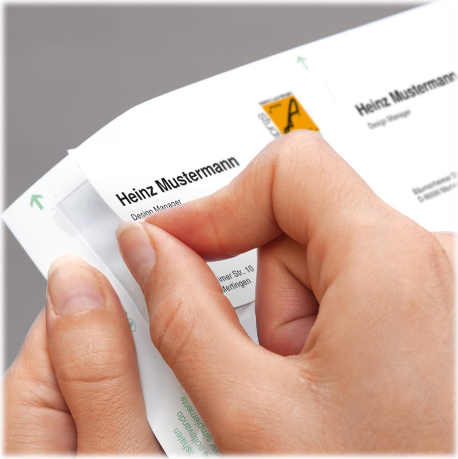 PC-Visitenkarten hochweiß, satiniert, mit einer Grammatur von 225 g/m2, FSC -zertifiziert, sind ideal zum schnellen und einfachen Gestalten und Drucken am eigenen PC und Drucker. Einfaches Heraustrennen durch 3C-Technologie: glatter Schnitt rundum ohne Perforation. Die Visitenkarten sind vielseitig einsetzbar beispielsweise für Events, Messen oder geschäftlichen und privaten Kontaktaustausch. Für alle InkJet- und (Farb-)Laser-Drucker sowie Kopierer geeignet. In der Packung sind 10 Blatt DIN A4 bzw. 100 Karten im Format 85x55 mm enthalten.