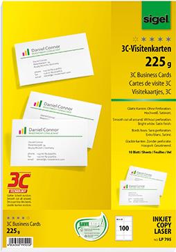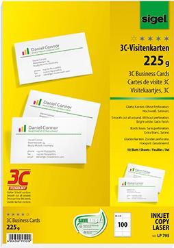 Sigel Business Card 3C LP795 - Visitenkarten - hochweiß - 85 x 55 mm - 225 g/m2 - 100 Karte(n) (10 Bogen x 10) - (LP795)