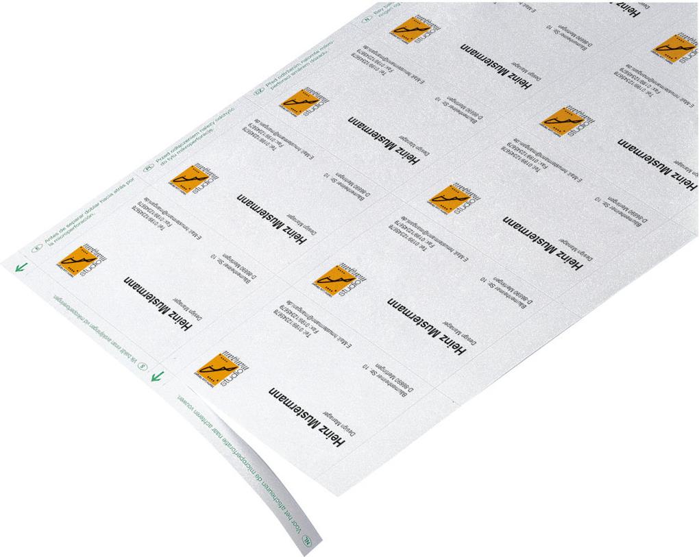 PC-Visitenkarten hochweiß, satiniert, mit einer Grammatur von 200 g/m2, FSC -zertifiziert, sind ideal zum schnellen und einfachen Gestalten und Drucken am eigenen PC und Drucker. Die ultra-feine Microperforation garantiert ein leichtes Abtrennen und exakte Kanten fast wie geschnitten. Die Visitenkarten sind vielseitig einsetzbar beispielsweise für Events, Messen oder geschäftlichen und privaten Kontaktaustausch. Für alle InkJet- und (Farb-)Laser-Drucker sowie Kopierer geeignet. In der Packung sind 60 Blatt DIN A4 bzw. 600 Karten im Format 85x55 mm enthalten.
