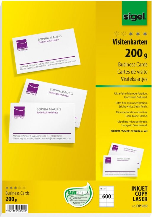 Sigel Business Card DP939 - Visitenkarten - 600 Karte(n) |