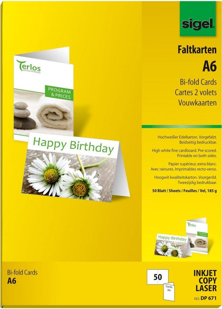 Sigel Folding DP671 - Faltkarte - hochweiß - A6 (105 x 148 mm) - 185 g/m2 - 50 Karte(n) (DP671)