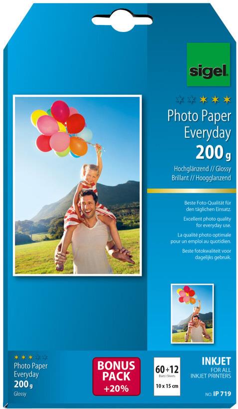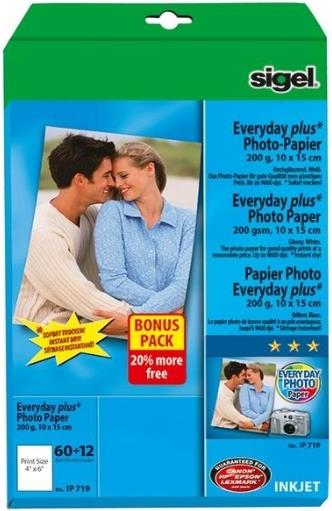 Sigel InkJet Everyday plus Photo Paper IP719 - Fotopapier, hochglänzend - weiß - 100 x 150 mm - 200 g/m2 - 72 Blatt (IP719)