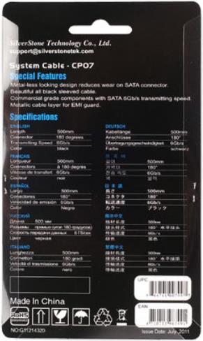 Dank der SATA-Revision 3.0 sind konforme Geräte beliebter als je zuvor. Aus diesem Grund hat SilverStone mit dem CP07 (mit 180°-Connector) zwei passende Kabel geschaffen, die den höheren Bandbreiten-Anforderungen genügen. Im Gegensatz zu traditionellen SATA-Kabeln mit Metall-Clips, die ihre Effektivität mit steigender Benutzung dank Kratzern verlieren, erhält das CP07 eine sichere Verbindung auf Grund eines präzisen entworfenen und hergestellten Anschlusses.