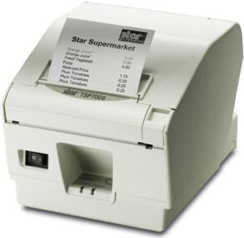 Star TSP743II-24, 8 Punkte/mm (203dpi), Cutter, weiß Bondrucker, Thermodirekt, Auflösung: 8 Punkte/mm (203dpi), variable Papierbreite (58/82,5/80mm), Druckbreite (max.): 80mm, 250mm/Sek., inkl.: Cutter, ESC/POS, Star, separat bestellen: Netzteil, Schnittstelle, weiß (39442400)