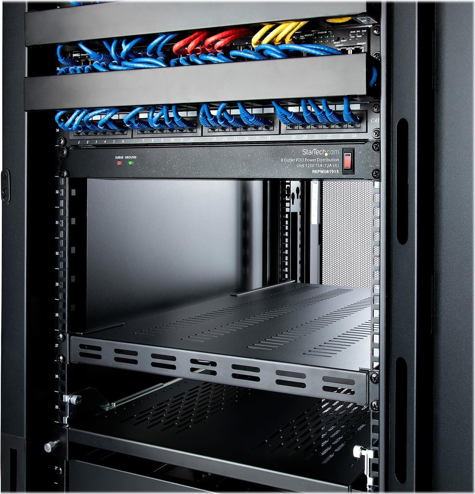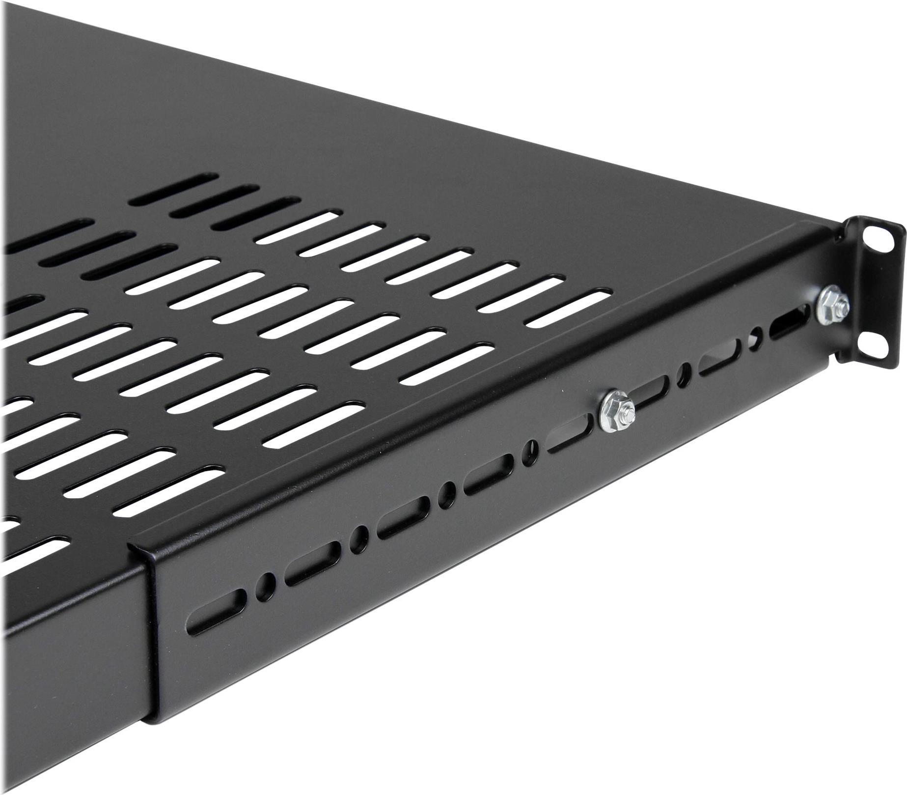 StarTech.com Server Rack Shelf - 1U - Adjustable Mount Depth - Heavy Duty - Rack - Regal - Schwarz - 1U - 48.3 cm (19") - für P/N: RK1233BKM, RK2433BKM, RK2537BKM, RK3236BKF, RK4236BKB, RK4242BK24, RK4242BK30