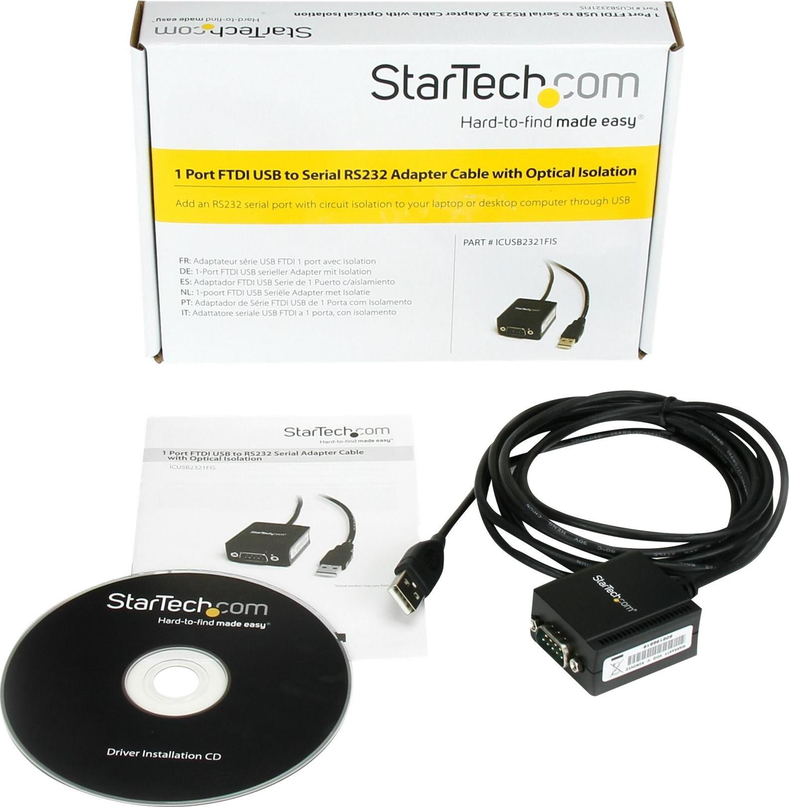 StarTech.com 1 Port FTDI USB auf RS232 Adapterkabel optisch isoliert - Serieller Adapter - USB - RS-232 - Schwarz (ICUSB2321FIS)