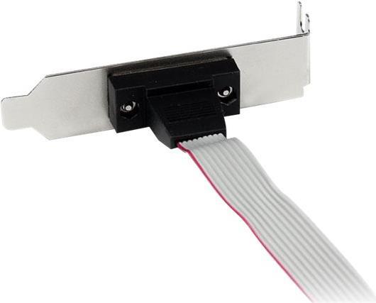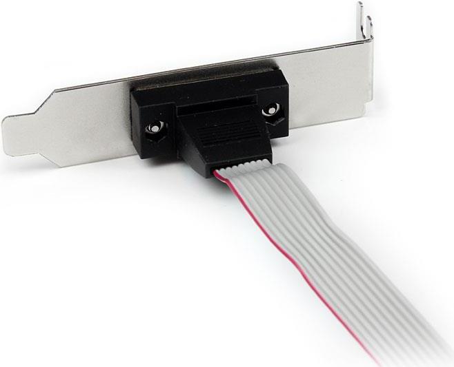 Die Low Profile-Port-Seriell-Platte (0,4 m) PLATE9M16LP fügt an der Rückseite eines Kleingehäusecomputers/Low Profile-Computer einen DB9-Port mit Verbindung zu einem IDC10-Header-Anschluss an.
