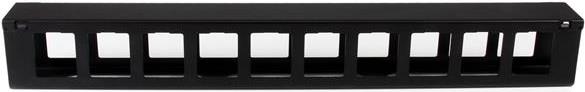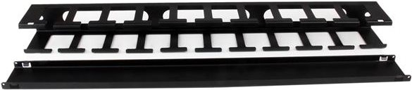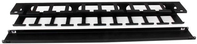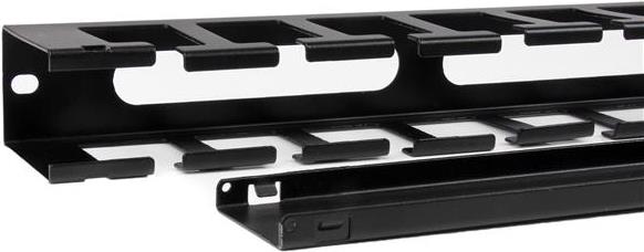 Die Kabelführung dient als entfernbare obere Abdeckung, so dass gebündelte Kabel schnell und einfach hinzugefügt oder entfernt werden können. Der Kanal hat an jeder Seite eine Reihe von Fingern und Durchlässe an der Rückseite, damit Sie Kabel dort entlang führen können, wo Sie sie benötigen, und dabei die Kabel entlasten können.