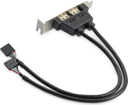 Das Slotblech ist eine ideale Lösung für kompakte Computergehäuse. Es kann an der Rückblende eines Low Profile- oder Thin Client-Computergehäuses montiert werden und fügt zwei USB-Buchsen für einfache Verbindungen mit USB-Peripheriegeräten hinzu.