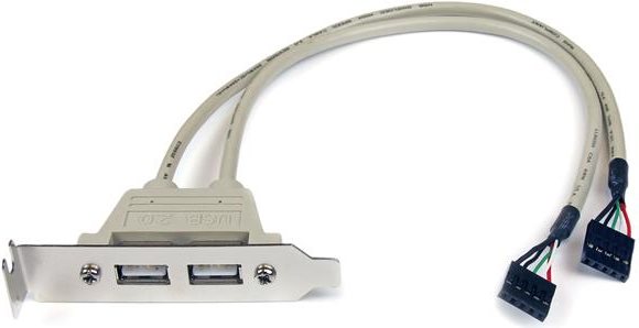 Das 2-Port-Low Profile-USB-Slotblech USBPLATELP konvertiert die USB-Stifte an einem USB 2.0-Hauptplatinen-Header in 2 standardmäßige USB A-Ports.