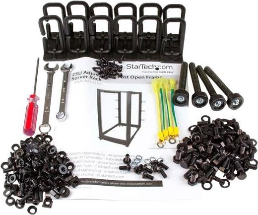 StarTech.com 25U Adjustable Depth Open Frame 4 Post Server Rack w - Casters, Levelers and Cable Management Hooks - Relais-Rack (4 Pfosten) - Schwarz - 25U (4POSTRACK25U)