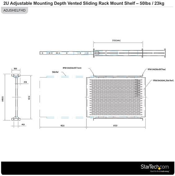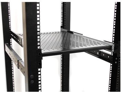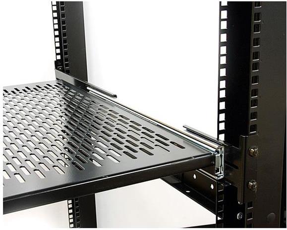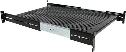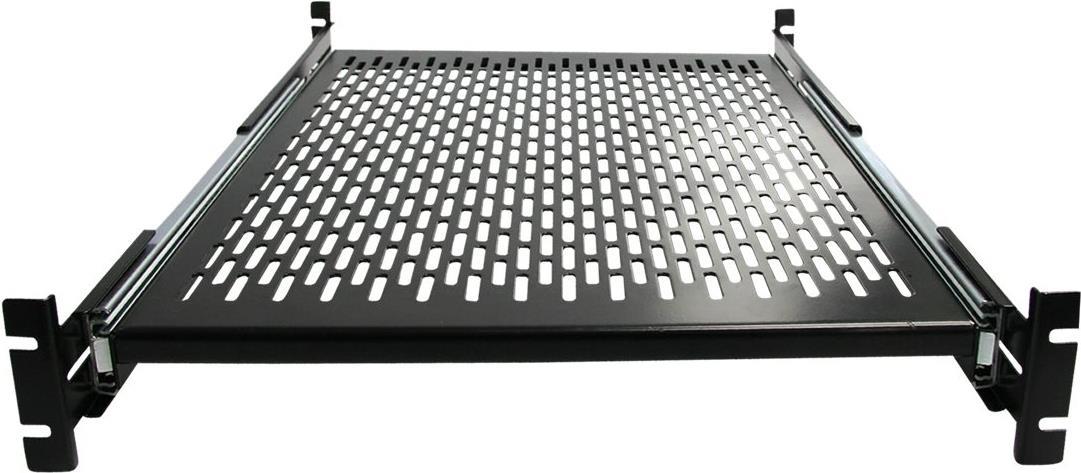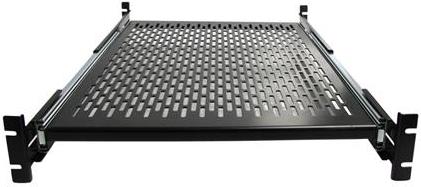 2 HE Schiebefachboden für Server Rack Montage - Einstellbare Einbautiefe von 51 bis 74 cm - Belüftet - 22,5 kg Tragkraft - Ablagefach für Rack Geräte - 60 cm Tief (UNISLDSHF19).