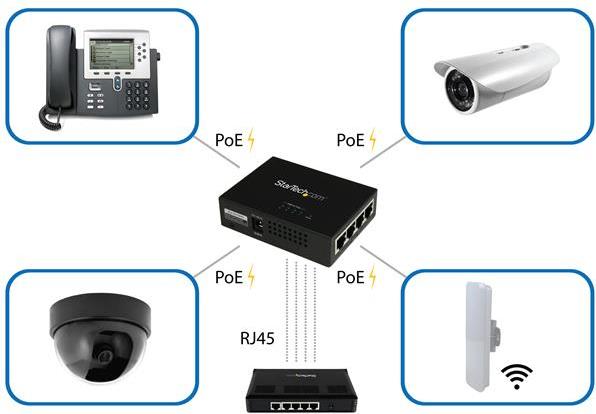 Er liefert bis zu 30 Watt Leistung für jeden Anschluss, sodass Sie ganz einfach bis zu vier High-Power PoE-fähige Geräte, z. B. IP-Kameras, über ein standardmäßiges Ethernet-Kabel mit Strom versorgen und nutzen können.