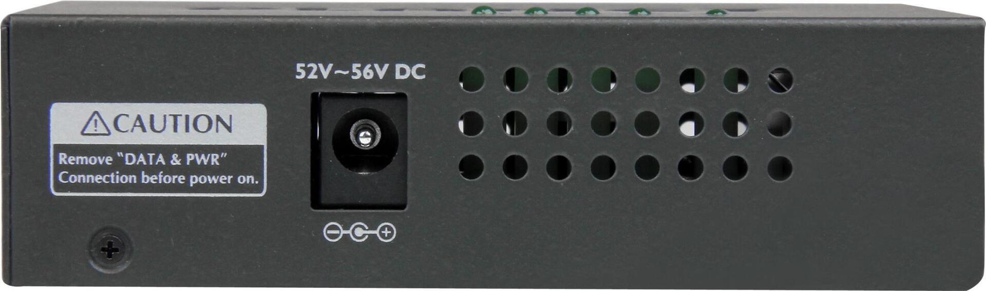 Dieser Injektor ist die perfekte Lösung für eine Vielzahl von Umgebungen. Er hat ein robustes Metallgehäuse, ist für die Wandmontage geeignet und doch nur handtellergroß und somit auch hervorragend für den Schreibtisch geeignet.