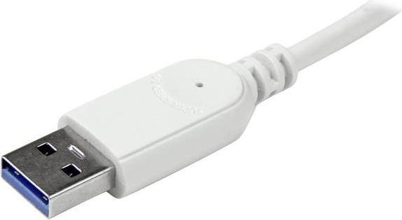 Der Hub ist mit einem integrierten Kabel ausgestattet, das mit 98 cm länger als bei den meisten herkömmlichen Hubs ist. Das längere Kabel ermöglicht die Flexibilität, den Hub und die Geräte genau nach Ihren Wünschen zu platzieren und sicherzustellen, dass der Hub unabhängig davon, wo sich der USB 3.0-Anschluss befindet, an Laptop oder Tablet angeschlossen werden kann.