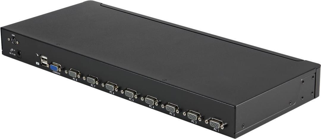Als perfekte Ergänzung für Serverräume kann der 8-Port Switch in eine Einheit (1U) eines Racks oder Schrankes montiert und mit mehreren KVM-Switches kaskadiert werden, sodass insgesamt bis zu 64 Computer über diesen einen Switch gesteuert werden können.