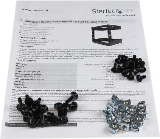 StarTech.com 8HE 19 Open Frame Geräte Rack Wandmontagefähig - 30cm Tief - Wall Mount Rack aus Stahl - Schrank - Schwarz - 8U - 48.3 cm (19")