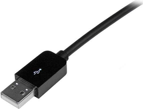 Das 3 m lange schwarze Lightning-auf-USB-Kabel für iPhone, iPod und iPad USBLT3MB passt farblich zu schwarzen Mobilgeräten und ermöglicht Synchronisieren und Laden von Lightning-fähigen mobilen Digitalgeräten auf große Entfernung. Es ist ideal für den Gebrauch unterwegs, wo Zugriff auf Geräte während des Ladevorgangs benötigt wird. Das Kabel besteht aus dickem Draht (0,5 mm ), um Entfernungsbeschränkungen zu überwinden und volle Ladeleistung in einer Entfernung von bis zu 3 m ohne Verlust von Ladezeit zu ermöglichen.