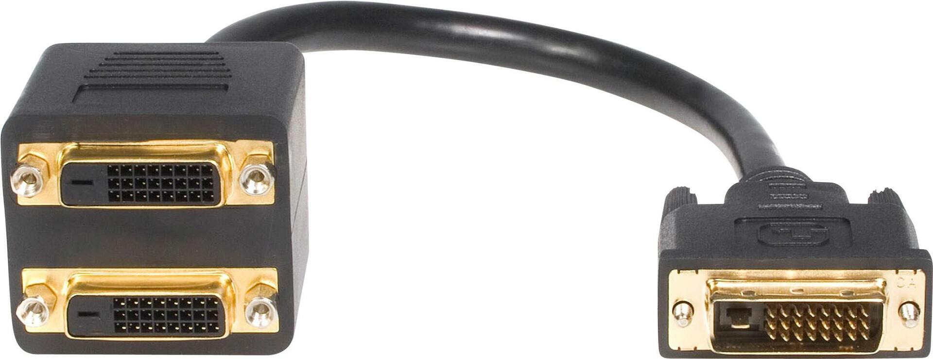 Mit dem 30 cm langen DVI-D-Splitterkabel DVISPL1DD können Sie zwei DVI-D-Monitore/-Displays oder Projektoren an einen einzigen digitalen DVI-D-Videoausgang Ihres Computers anschließen.