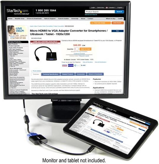 | Produktbeschreibung | StarTech.com Micro-HDMI auf VGA-Adapter/Konverter für Smartphones/Ultrabook/Tablet - 1920x1080 Videokonverter - Schwarz |