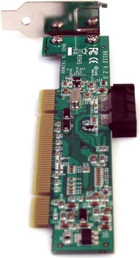 Mit dem PCI-auf-PCI Express-Adapter PCI1PEX1 können Sie Low-Profile-PCIe Erweiterungskarten in einem Server-/Desktop-Hauptplatine PCI-Steckplatz verwenden. Der Adapter wird über den 32-Bit PCI-Steckplatz verbunden und bietet so einen Low-Profile-PCIe-Steckplatz an seiner Stelle. Mitgeliefert wird auch ein Standard-Slotblech für den Einbau in größere Server- oder Desktop-Erweiterungssteckplätze, die auch Karten in Standardgröße aufnehmen können.