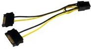 Verwandelt zwei 15-polige SATA Stromversorgungsanschlüsse in einen 6-poligen PCI Express Videokarten-Stromversorgungsanschluss