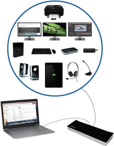 | Produktbeschreibung | StarTech.com Triple-Video Docking Station for Laptops - USB 3.0 - USB-Docking-Station |