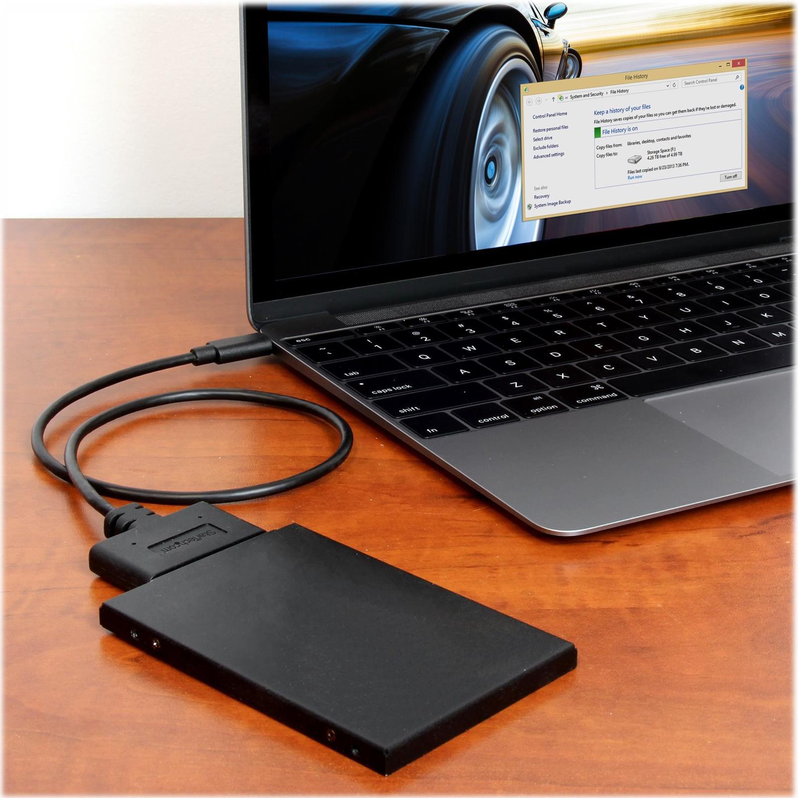 Nutzen Sie den USB-C -Anschluss am neuesten MacBook, Chromebook Pixel oder anderen Laptop für schnellen Zugriff auf externe Laufwerke. Mit diesem Kabeladapter können Sie den USB Type-C -Anschluss zum direkten Anschließen Ihres Laptops an ein 2,5-Zoll-Solid State-Laufwerk oder -Festplattenlaufwerk nutzen und mithilfe des besonders schnellen USB 3.1 Gen. 2 (10 Gbit/s) darauf zugreifen. Schließen Sie schnell und einfach Ihre SATA-Laufwerke ohne zusätzliches Zubehör an.