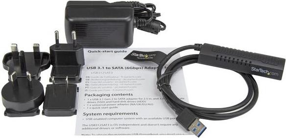StarTech.com "USB 3,1 (10Gbit/s) Adapter Kabel f?r 2.5"" und 3.5"" SATA SSD/HDD Laufwerke - Unterst?tzt SATA III " - Speicher-Controller - 6,4 cm, 8,9 cm (2.5", 3.5") - SATA 6Gb/s - 6GBps - USB 3,1 (Gen 2) - Schwarz (USB312SAT3)