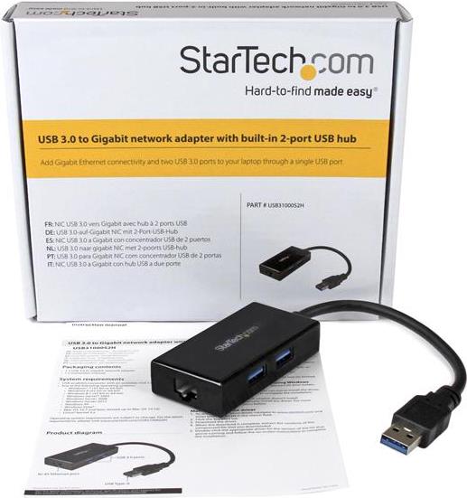 StarTech .com USB 3.0 auf Gigabit Netzwerk Adapter mit 2 Port USB Hub - Native Treiber-Unterstützung (Windows, Mac und Chrome OS) - Netzwerkadapter Rüsten Sie Ihr Tablet, Ultrabook oder Laptop mit leistungsfähigem Netzwerkzugriff aus, selbst wenn kein integrierter RJ45-Anschluss vorhanden ist. Dieser USB 3.0-auf-Gigabit-Netzwerkadapter ermöglicht kabelgebundenen Netzwerkzugriff und bietet zwei USB 3. (USB31000S2H)
