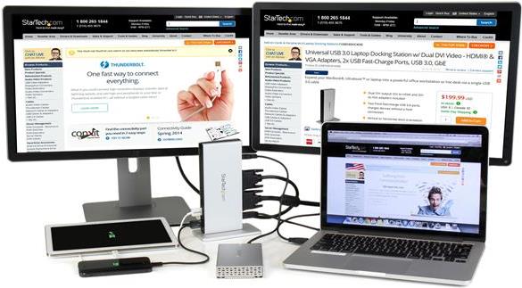 Diese USB-3.0-Dockingstation für zwei Monitore verwandelt Ihren Laptop in eine Workstation für zwei Monitore mit flexiblen Konfigurationsoptionen.