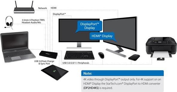 | Produktbeschreibung | StarTech.com USB 3.0 Dockingstation - Windows / macOS kompatibel - Dual Displays, HDMI/ DisplayPort oder 4K Ultra HD auf einem Monitor - Docking Station - HDMI, DP |