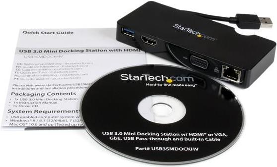 | Produktbeschreibung | StarTech.com Universal USB 3.0 Laptop Mini Docking Station w/ HDMI or VGA, Gigabit Ethernet - USB-Docking-Station |