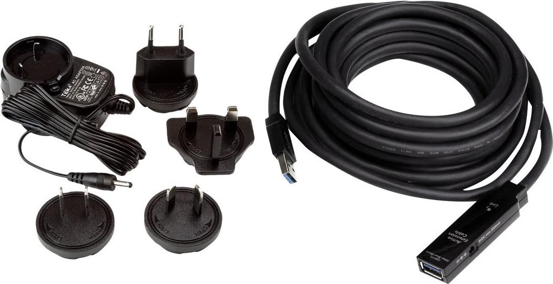 Das aktive USB 3.0-Verlängerungskabel ist ein All-in-One-Kabel zur Überwindung von Entfernungsbeschränkungen und Stromquellenbeschränkungen und enthält bus-betriebene aktive Schaltkreise zur Gewährleistung von Leistung über die Längenbeschränkungen von Standard.USB-Kabeln hinaus. Bis zu 4 dieser Kabel können in Reihe geschaltet werden, sodass die Verbindungsreichweite auf insgesamt 20 Meter erweitert werden kann. Falls erforderlich, kann das USB-Gerät über das mitgelieferte Universalnetzteil und eine Wandsteckdose mit Strom versorgt werden.