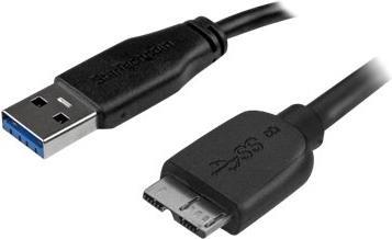 StarTech.com schlankes SuperSpeed USB3.0 A auf Micro B Kabel - St/St - USB-Kabel - 9-polig USB Typ A (M) - 10-polig Micro-USB Typ B (M) - 3,0m (USB3.0) - geformt - Schwarz (USB3AUB3MS)
