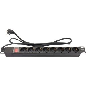 19\" Steckdosenleiste von Good Connections mit acht Schutzkontakt-Anschlüssen zum Einbau in 19\" Netzwerk-, Server- oder Wandschränke und als Wandmontage.