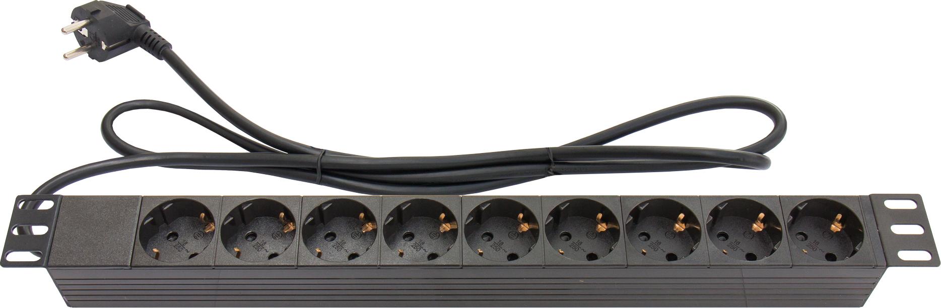 19\" Steckdosenleiste von Good Connections mit neun Schutzkontakt-Anschlüssen zum Einbau in 19\" Netzwerk-, Server- oder Wandschränke und als Wandmontage.