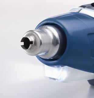 Der HL Stick kann so ziemlich alles, was man von einem Heißluftgebläse erwartet. Und noch ein bisschen mehr. Dank der handlichen Größe und des geringen Gewichts lassen sich die kniffeligsten Arbeiten mit höchster Präzision ausführen. Die absolut sichere Standfläche erlaubt außerdem freihändiges Erwärmen. Durch die kompakte Bauweise kommt der HL Stick überall hin, selbst an so schwer zugängliche Stellen, wie zum Beispiel das Innere von Modellen und andere Hohlräume. An schlecht beleuchteten Stellen bietet das integrierte LED-Arbeitslicht eine unentbehrliche Hilfestellung für hochpräzises Erwärmen. Das kompakte Multitalent wird mit 4 Aufsatz-Düsen geliefert: Die Reduzierdüse mit 7 mm Durchmesser erhöht die Temperatur des Luftstroms auf 500°C für konzentrierte Erwärmung. Mit der Präzisionsdüse (4,5 mm Durchmesser) lassen sich Werkstücke punktgenau bearbeiten. Und mit den beiden Reflektordüsen (10 mm und 40 mm Durchmesser) können Schrumpfschläuche in allen Größen verarbeitet werden – von punktuell bis breitgefächert.