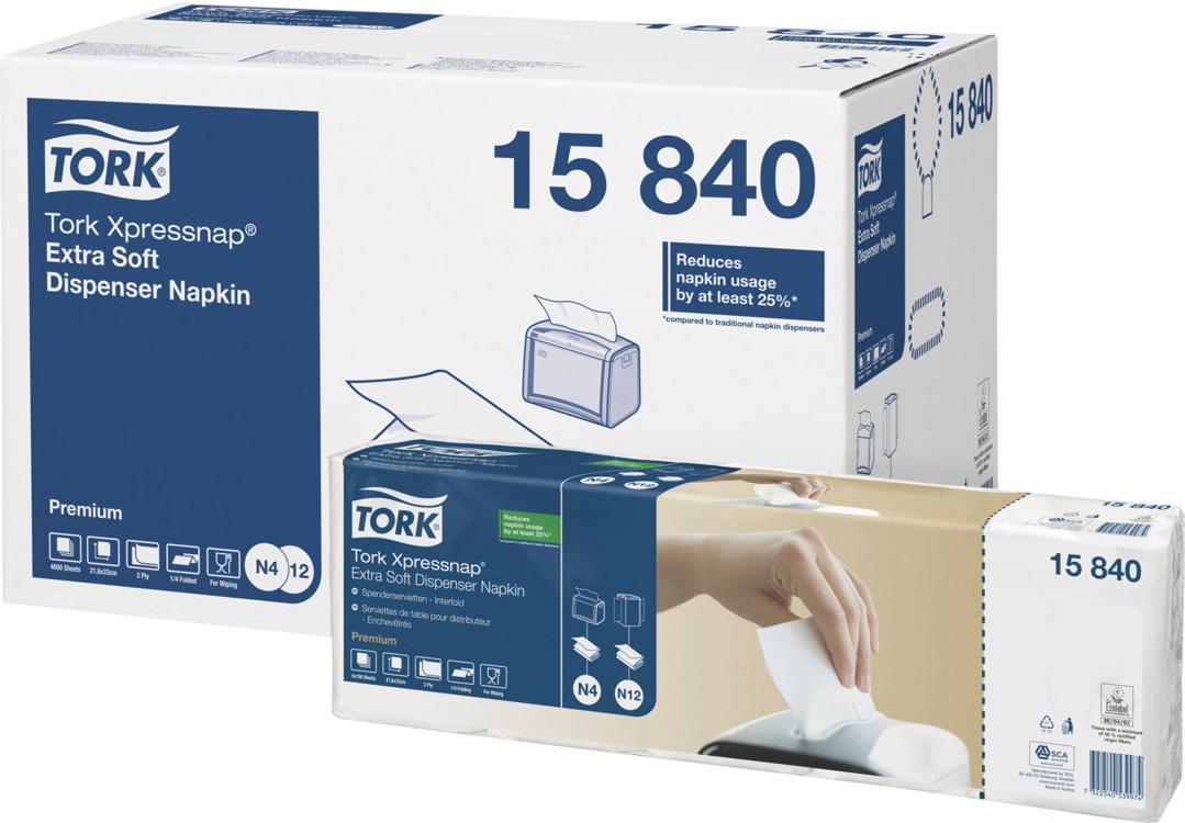 TORK Xpressnap Spender-Servietten, 213 x 330 mm, weiß 2-lagig, 1/4 Falz, Tissue, extra soft, für Xpress - 1 Pack a 500 Stück (15840)