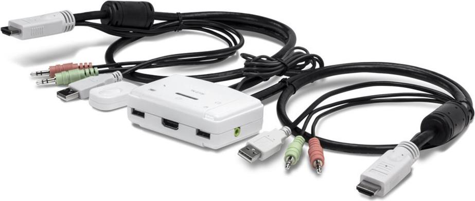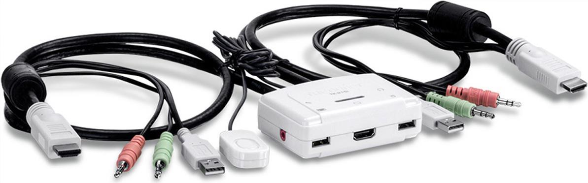Mit dem 2-Port HDMI KVM Switch von TRENDnet, Modell TK-215i, können Sie zwei Computer (mit einem unbelegten HDMI-Port) über ein einziges Bedienpult kontrollieren. Ein Treiber muss nicht installiert werden, stecken Sie einfach die integrierten Kabel ein, um zwei Computer mit einem 1080p Voll-HD Display zu teilen. Der TK-215i unterstützt HDMI und 3,5 mm Analog-Audio und verfügt über einen ergonomischen Kippschalter zum Schalten zwischen Computern.